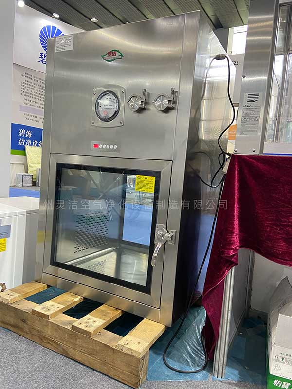 不銹鋼潔凈傳遞窗在傳遞貨物時(shí),頂部吹出高速、潔凈氣流,吹除貨物表面的塵粒,內(nèi)部配有紫外殺菌燈,可以有效的殺除貨物表面的細(xì)菌。待吹淋完成時(shí),方可打開另一扇門取走貨物。潔凈氣流起到氣閘作用,以保證潔凈室室外的空氣不會(huì)影響室內(nèi)的潔凈度。兩側(cè)門通過電子連鎖控制不可同時(shí)打開,兩側(cè)門內(nèi)側(cè)邊裝有專用密封條,以確保不銹鋼潔凈傳遞窗的氣密性。