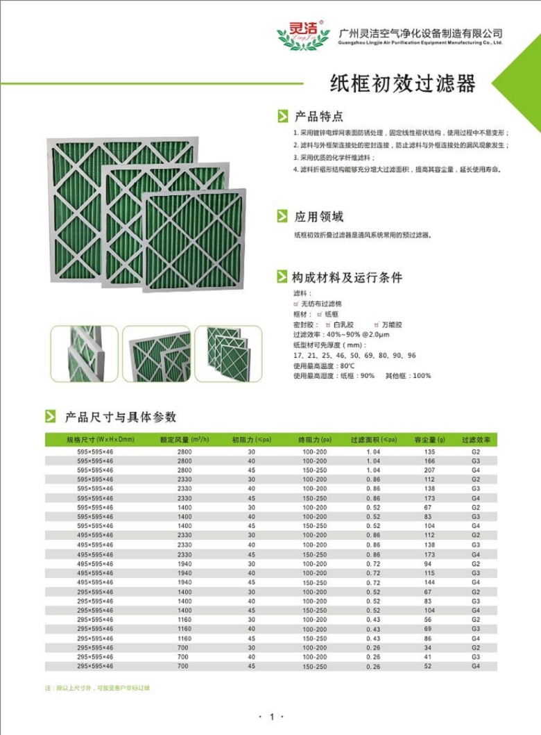 紙框初效過(guò)濾器效率:主要分為G1級(jí)、G2級(jí)、G3級(jí)、G4級(jí)四種效率。