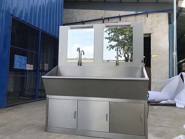 醫(yī)用不銹鋼洗手池采用優(yōu)質(zhì)304不銹鋼板制造,耐腐蝕,抗晶間腐蝕。不銹鋼醫(yī)用洗手池有單人、雙人、三人、四人及多人洗手池,出水方式有自動感應式、膝碰式、腳踏式。可自行選購電熱水器、不銹鋼出刷器。
